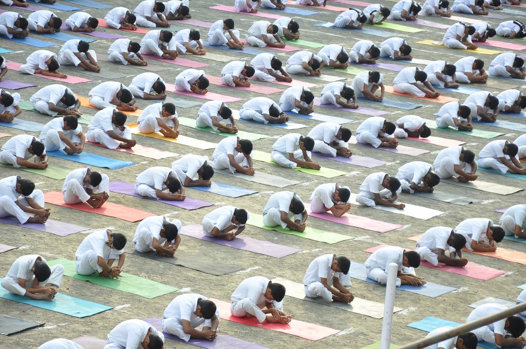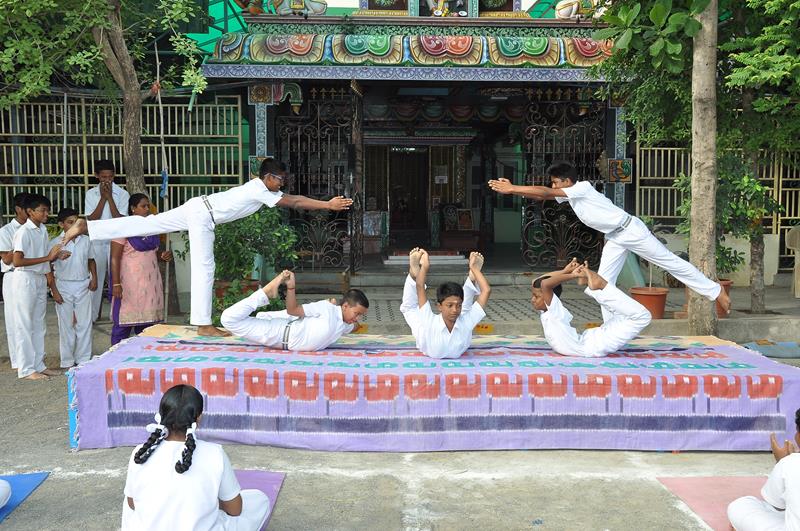 Students are trained to perform intricate 'Asanas' and 'Pranayama' proving their physical agility and kinesthetics.