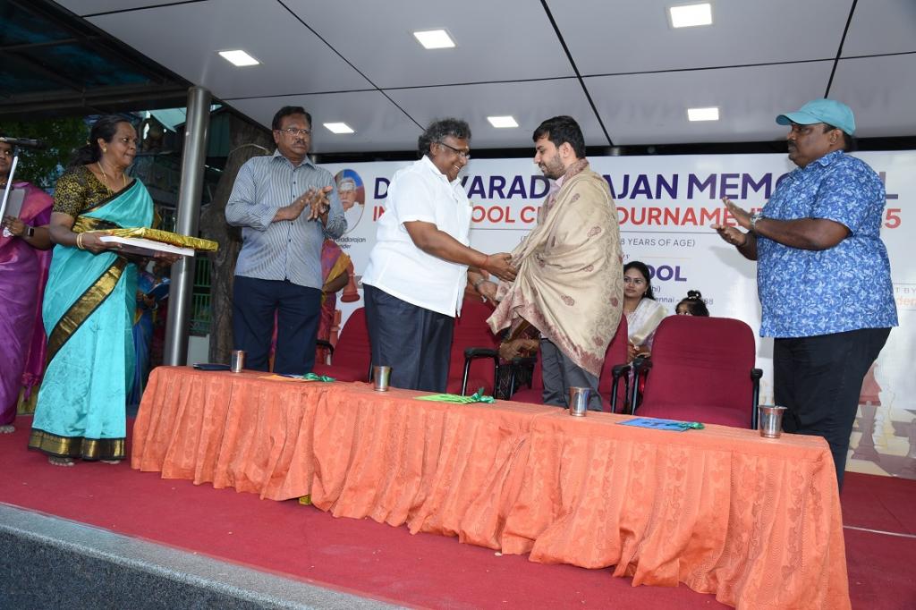 Dr.S.Varadarajan Memorial Interschool Children's Chess tournament was conducted on 28th September 2024.Nearly 800 participants from schools across Chennai participated. Grand Master Shyam Sundar,Coach of Indian Women Chess Olympiad team 2022 presided over the valedictory function and gave awards to 150 students.